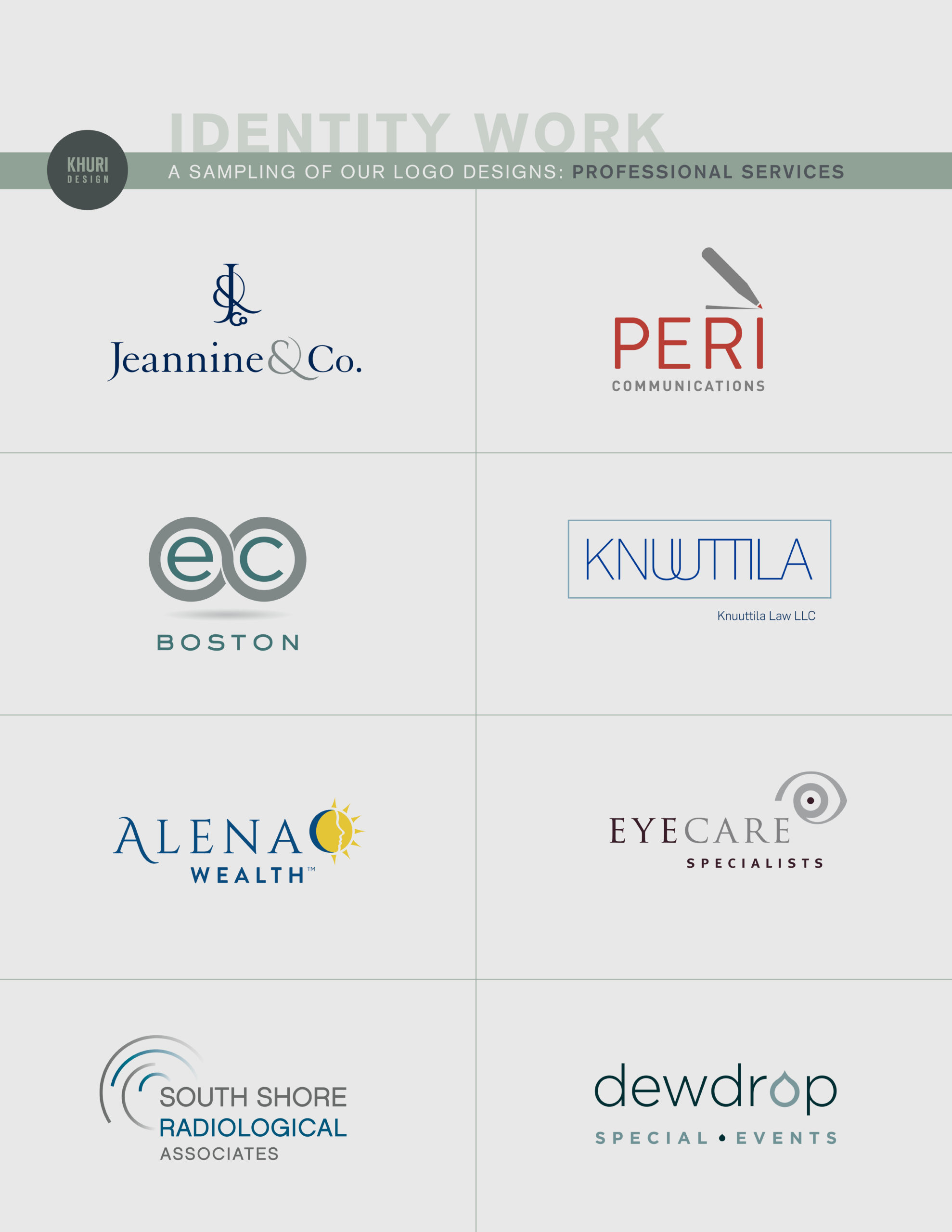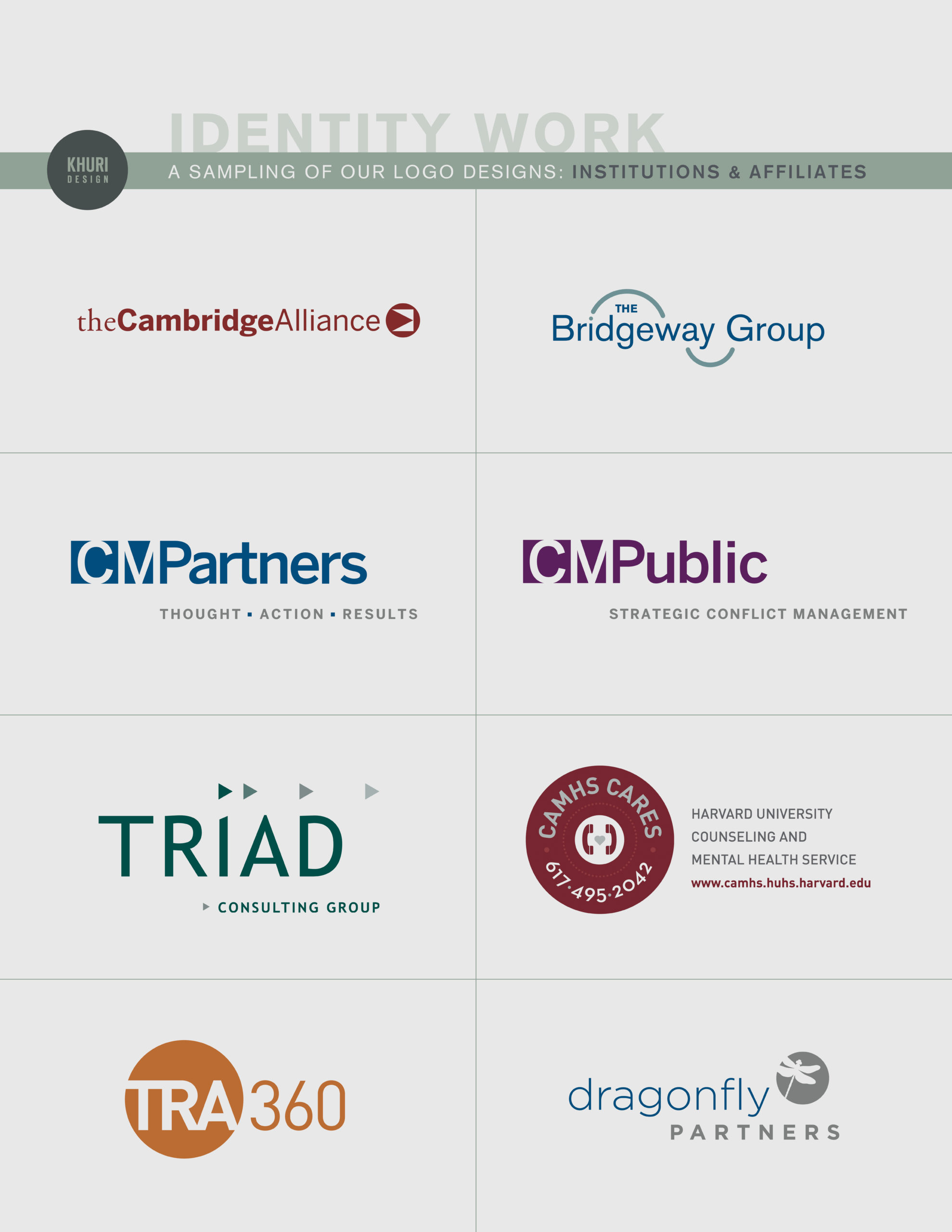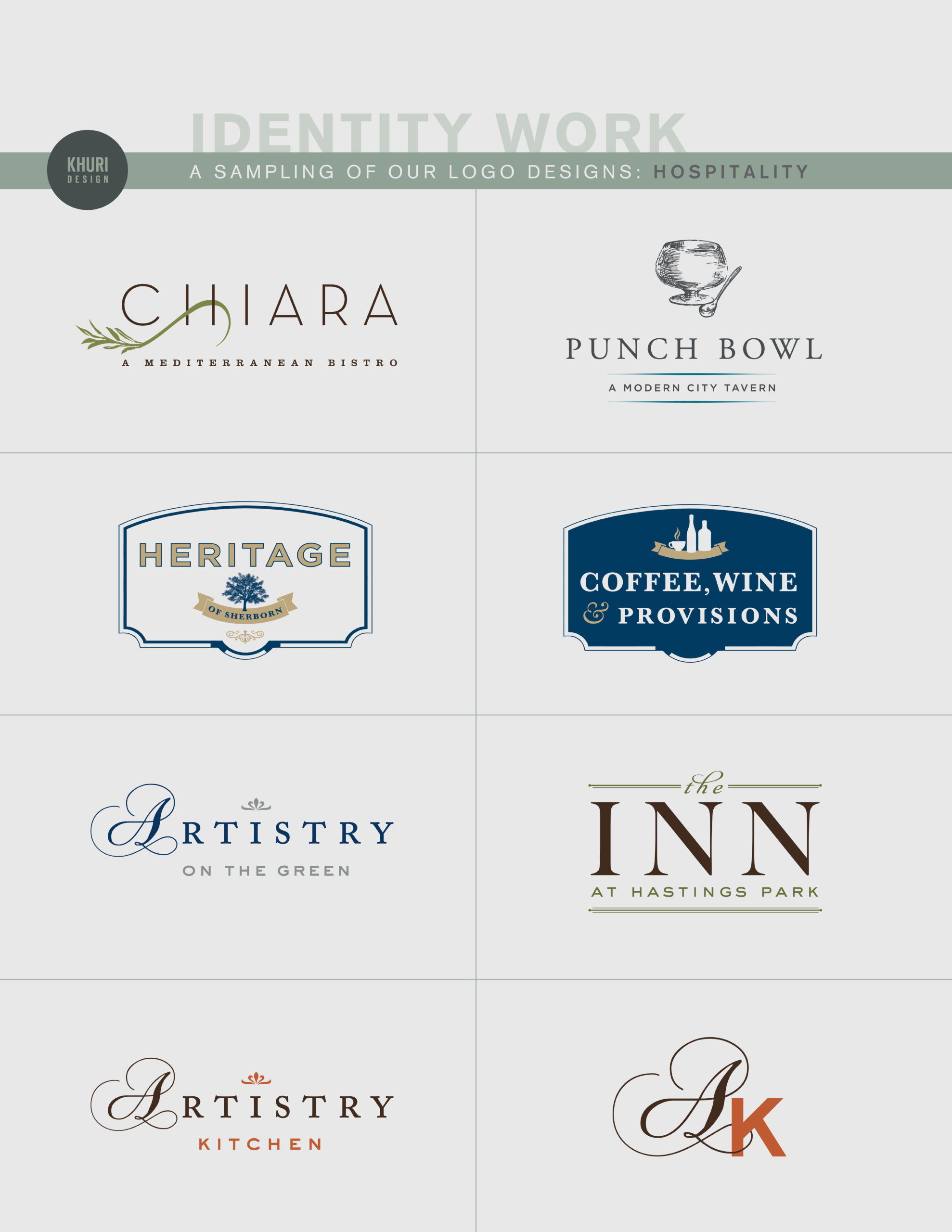Take a look at a sampling of brand identities that Khuri Design has created and developed over the years. Please call or email Khuri Design to discuss your project and receive a free estimate.