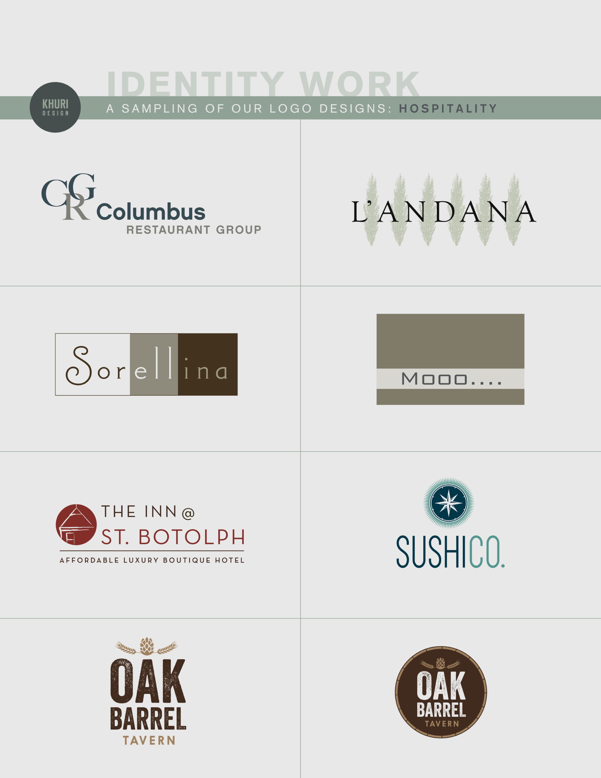 Khuri Design specializes in creating strong brand identities through strategic thinking, logo design, typography, palettes, method and materials, imagery and language which when combined, speak in one voice to communicate your best, visualized.®